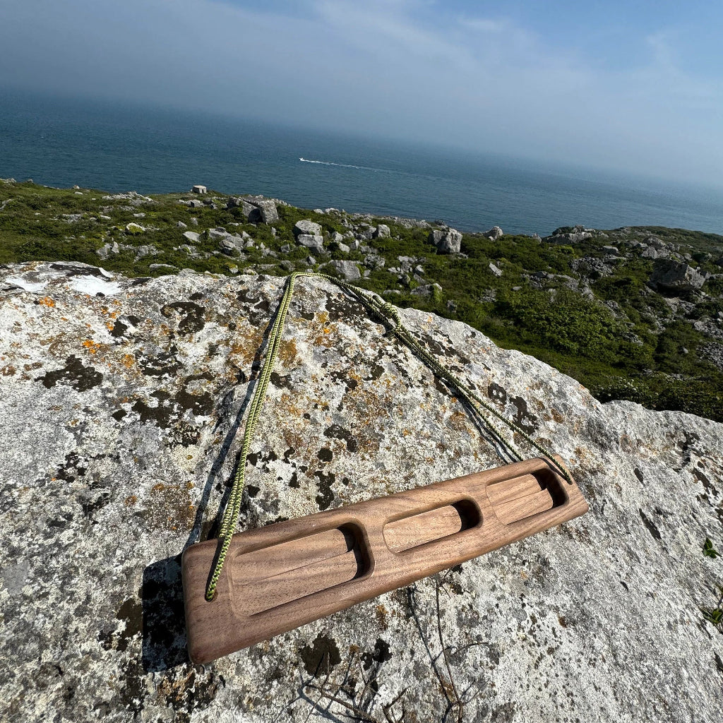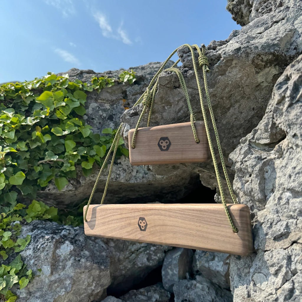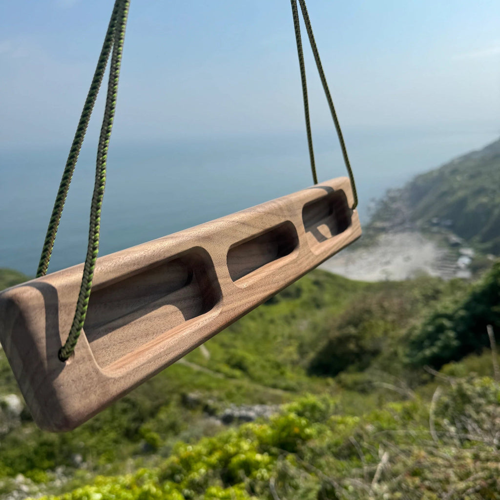 Experience a new era of climbing with the simplicity and functionality of our Portable Walnut Hangboard.